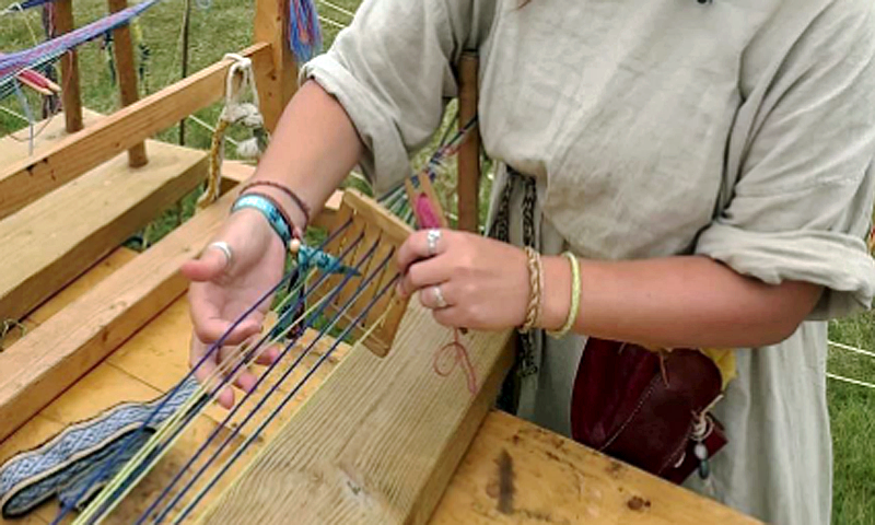 Try your hand at tablet weaving, one of the oldest and simplest weaving techniques, and watch as a wonderful pattern appears with a few turns of the cards. With the looms set up and ready to go, this is a great activity for adults and children alike.