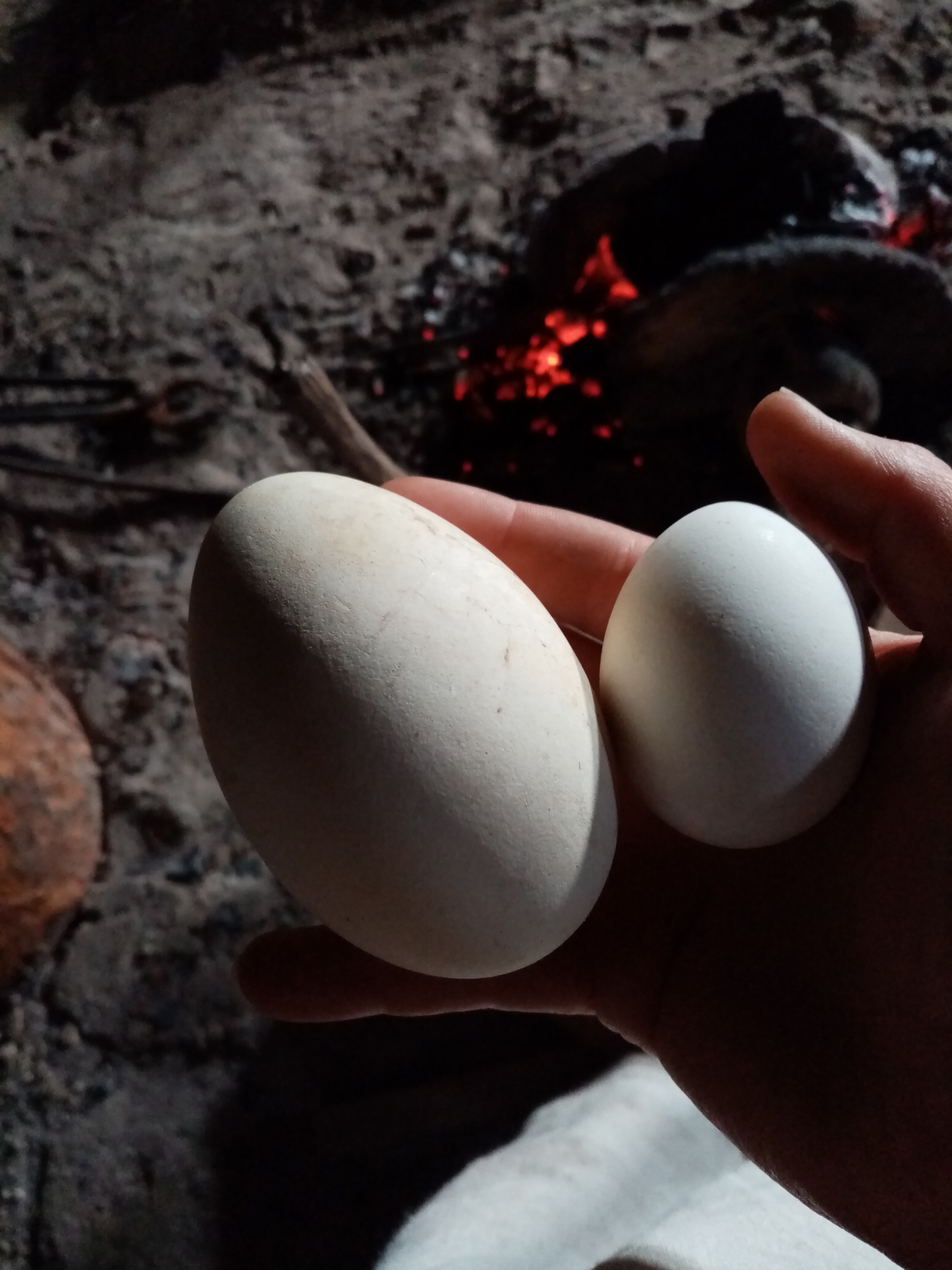– Goose eggs (very seasonal as geese never lay eggs all year round, even in the 21st century, and will soon have finished laying!), boiled, one per person.